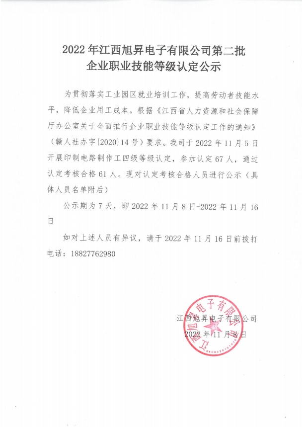 下一篇:2022年江西旭昇電子有限公司第一批企業職業技能等級認定公示